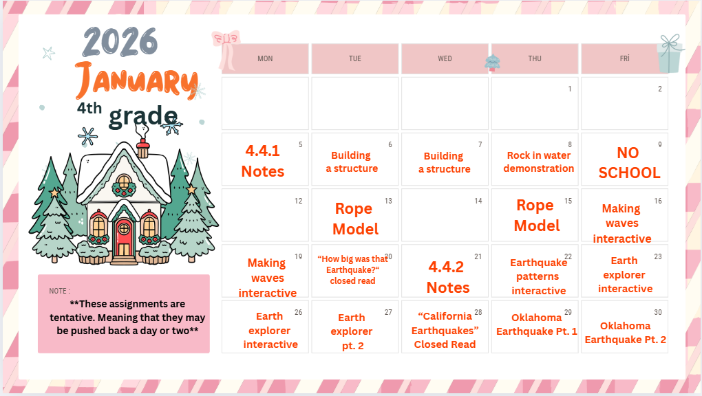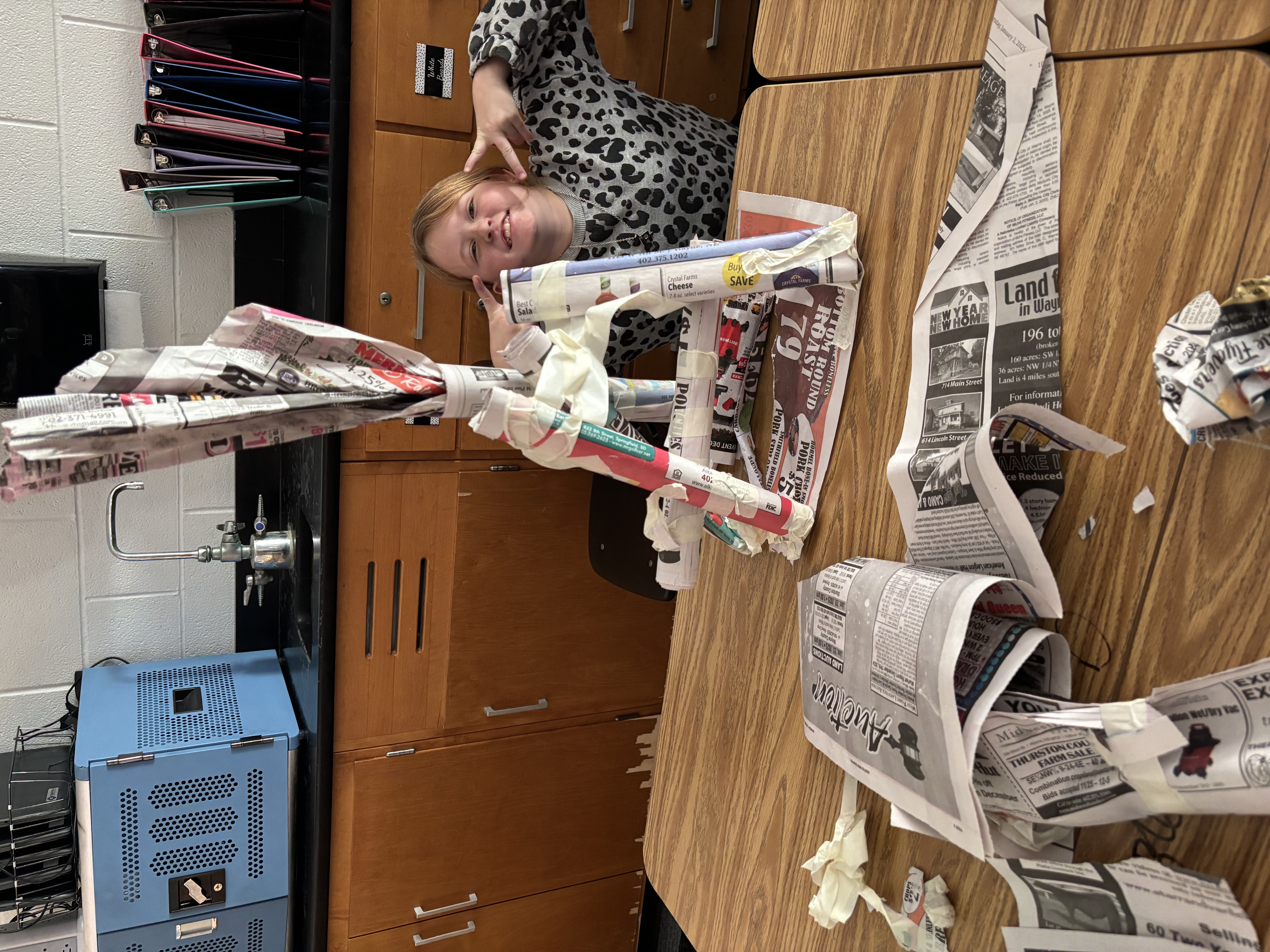 4th grade students are learning about earthquakes. They were given 10 minutes to build the tallest structure they could that could stand by itself for three minutes with newspaper and tape! All four teams' structures stood on their own for three minutes. We had a tie for the tallest structure standing at 24 inches!